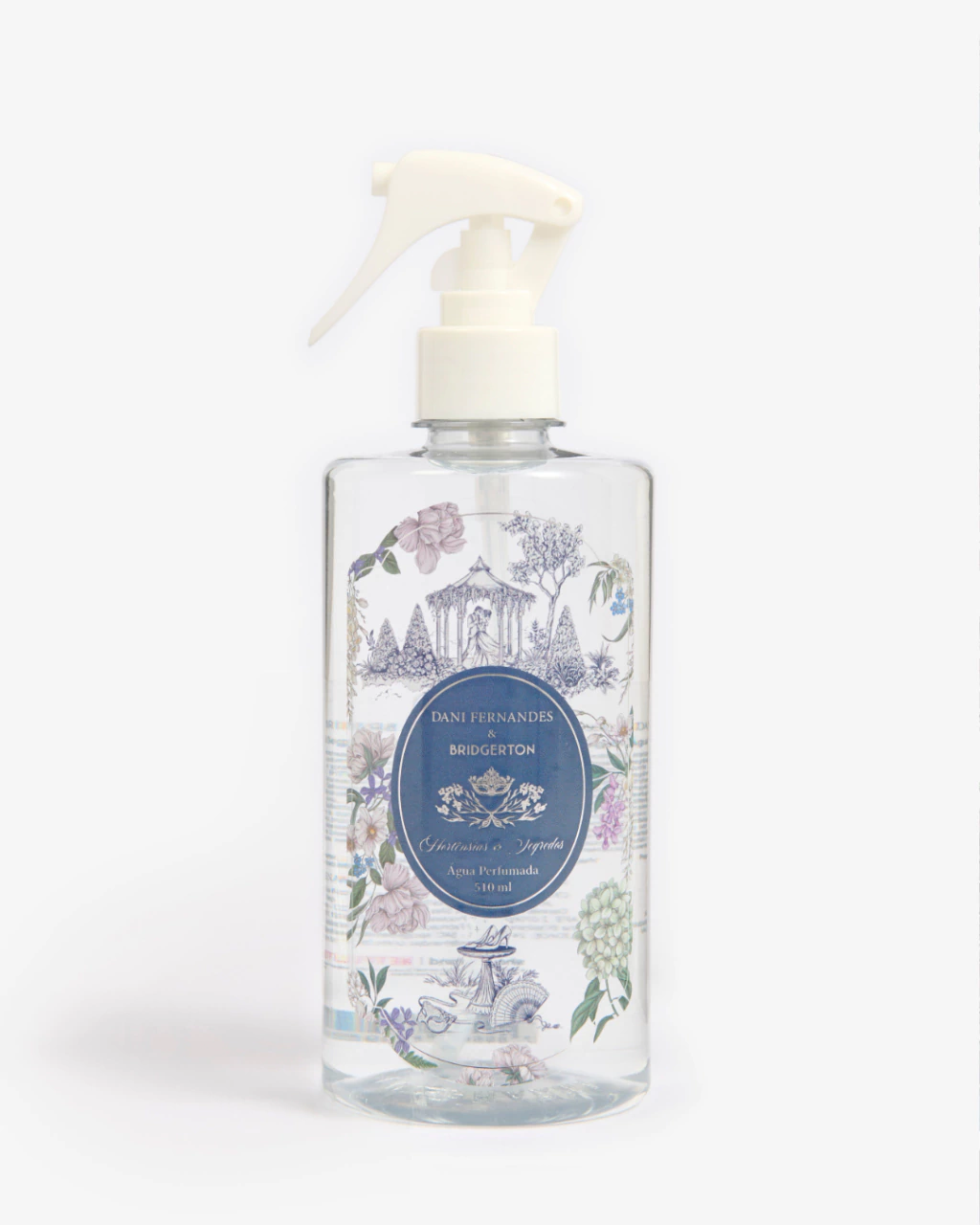 Na collab Dani Fernandes & Bridgerton, da Netflix e Shondaland, ela leva para roupas de cama, cortinas e estofados a sensação de um cenário reservado, perfeito para confidências, leituras e pausas sem pressa. A Fragrância Hortênsias & Segredos