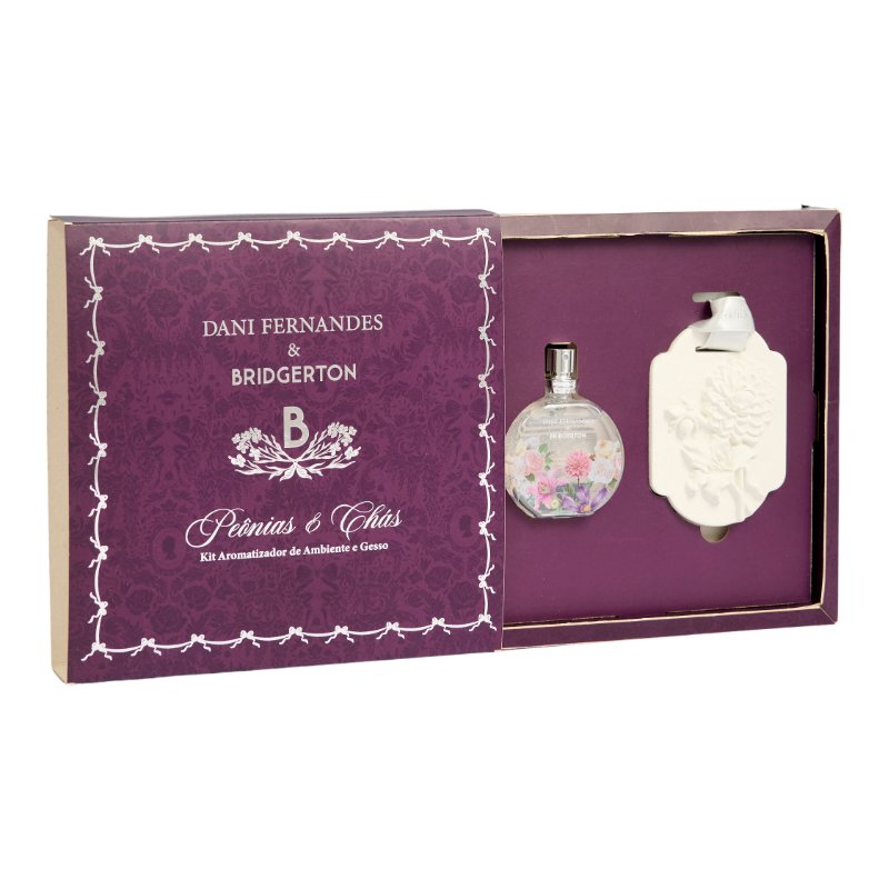 Na collab Dani Fernandes & Bridgerton, da Netflix e Shondaland, o gesso em formato de pingente, com relevo inspirado na estamparia exclusiva da coleção, funciona como um objeto perfumado para closets e gavetas. O home spray 25ml entra como complemento: ele serve para reaplicar a fragrância diretamente no gesso e renovar o perfume sempre que você desejar.