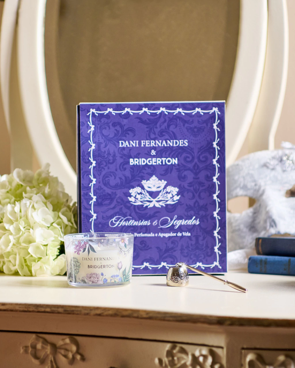 Na collab Dani Fernandes & Bridgerton, da Netflix e Shondaland, a vela perfumada leva para a casa o frescor cítrico sofisticado de Laranjas & Realeza, criando atmosfera de luz e presença marcante. O apagador metálico finaliza o momento com cuidado: preserva o perfume no ar e ajuda a evitar fumaça excessiva, mantendo a experiência refinada até o último instante.
